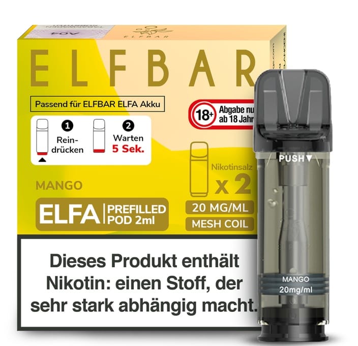 - 2x vorgefüllte Elfa Pods Mango (je 2ml)